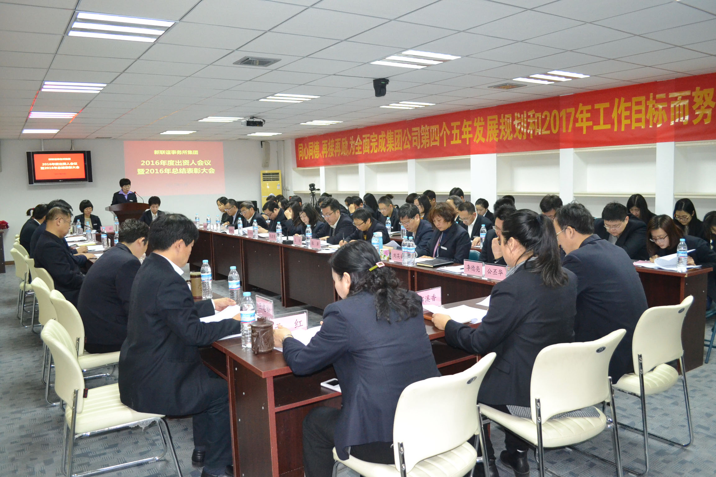 2017年1月23日上午,新聯(lián)誼事務(wù)所集團公司召開2016年出資人會議暨總結(jié)表彰會議。主會場設(shè)在視頻會議室,25名股東出席會議,34名年度獲獎員工列席會議。集團公司其他員工在十六個分會場觀席會議。