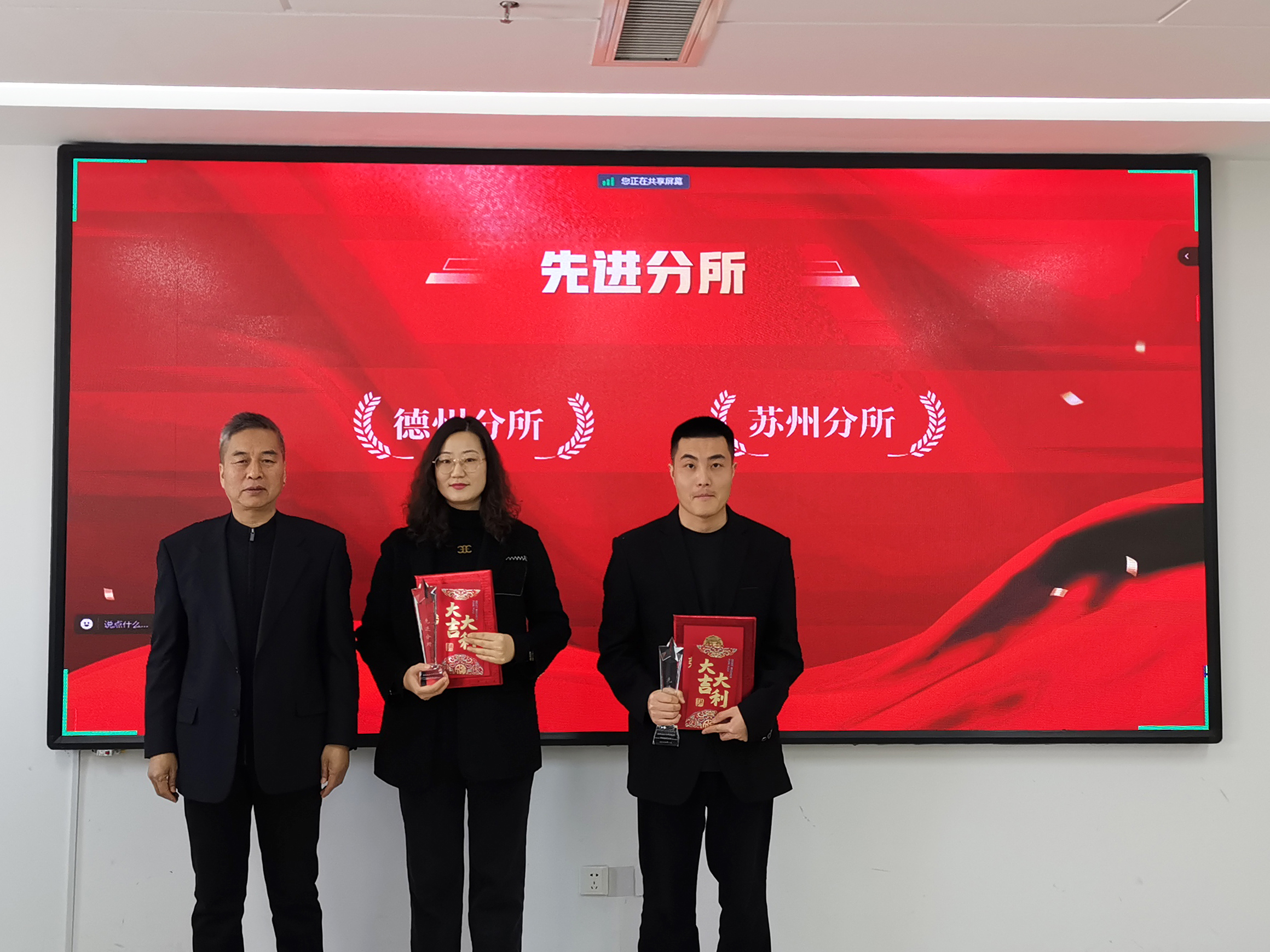 新聯(lián)誼會計師事務(wù)所黨支部副書記張長海宣讀表彰決定。2023年是新聯(lián)誼基礎(chǔ)建設(shè)年,全體員工凝心聚力、銳意進取,涌現(xiàn)出一批愛崗敬業(yè)、實干擔當?shù)南冗M集體和優(yōu)秀個人,共有3個部室、兩個分所和13名員工分別榮獲“先進部室”、“先進分所”、“優(yōu)秀個人”、“優(yōu)秀共產(chǎn)黨員"、"優(yōu)秀共青團員”和“優(yōu)秀工會積極分子”。