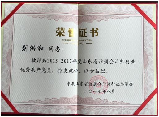 2017年8月,新聯(lián)誼會計師事務(wù)所支部被評為2015-2017年度山東省注冊會計師行業(yè)先進(jìn)黨組織;劉洪和、王銳同志榮獲2015-2017年度山東省注冊會計師行業(yè)優(yōu)秀共產(chǎn)黨員,郭真真同志榮獲優(yōu)秀黨務(wù)工作者。